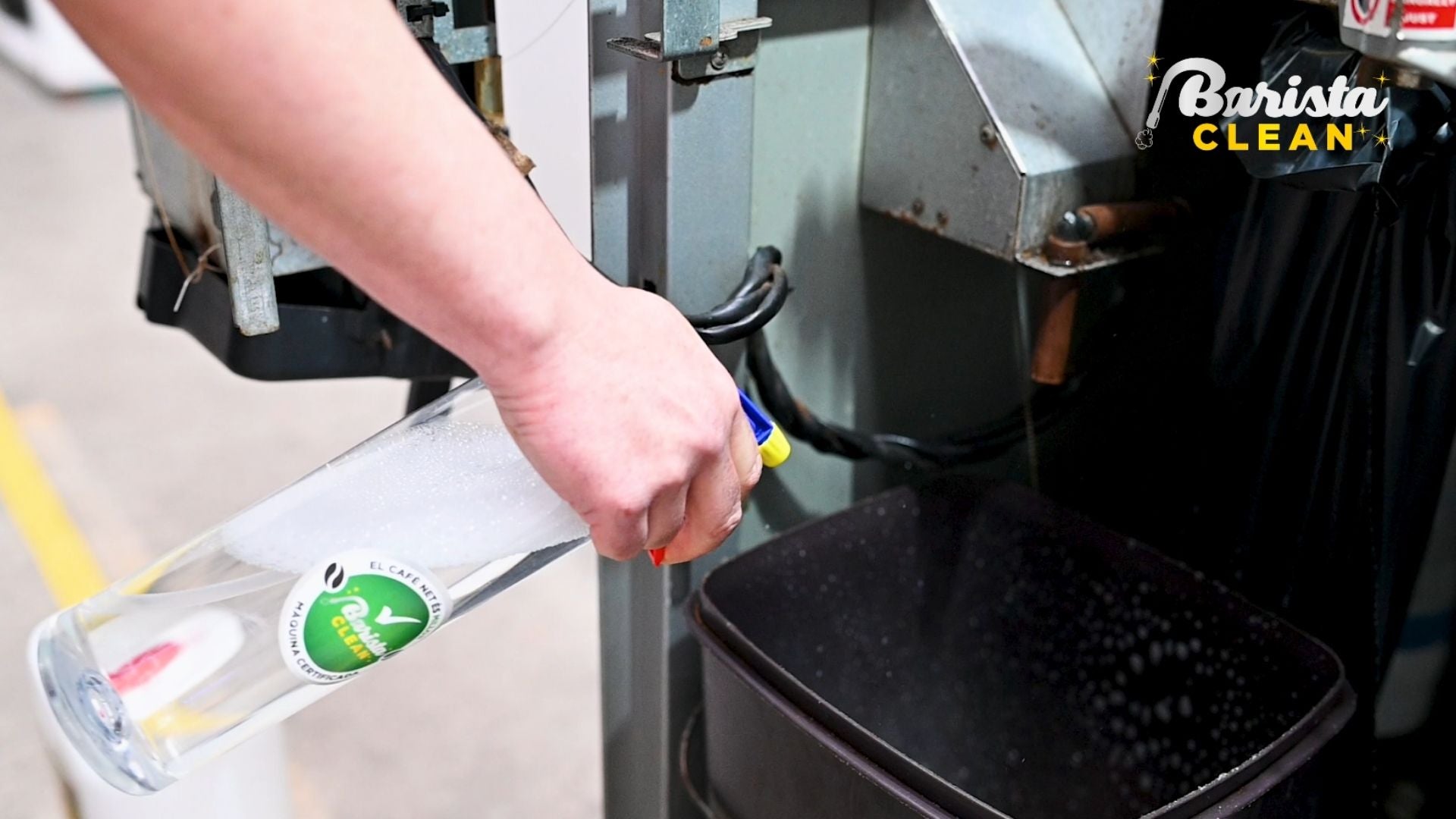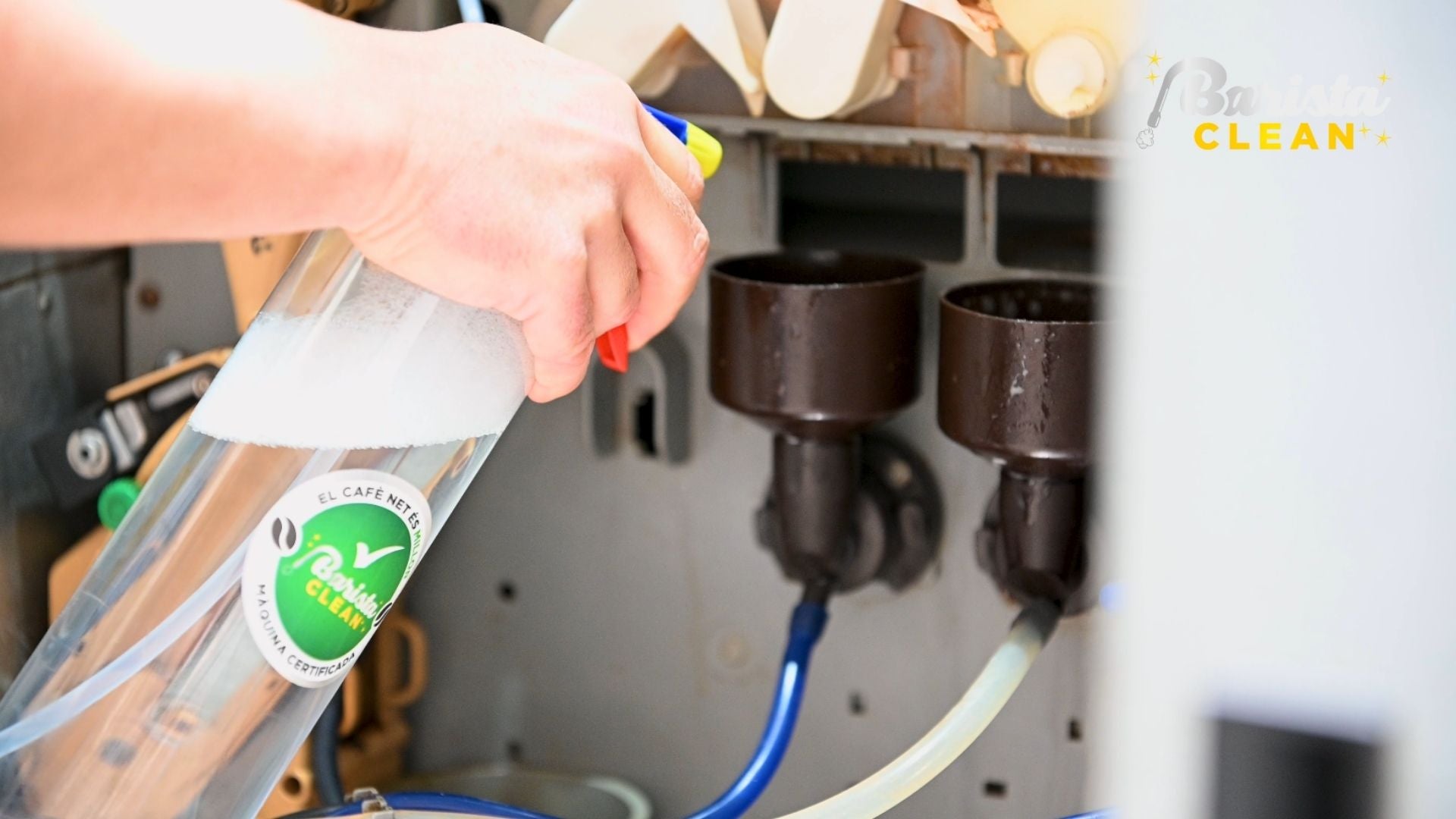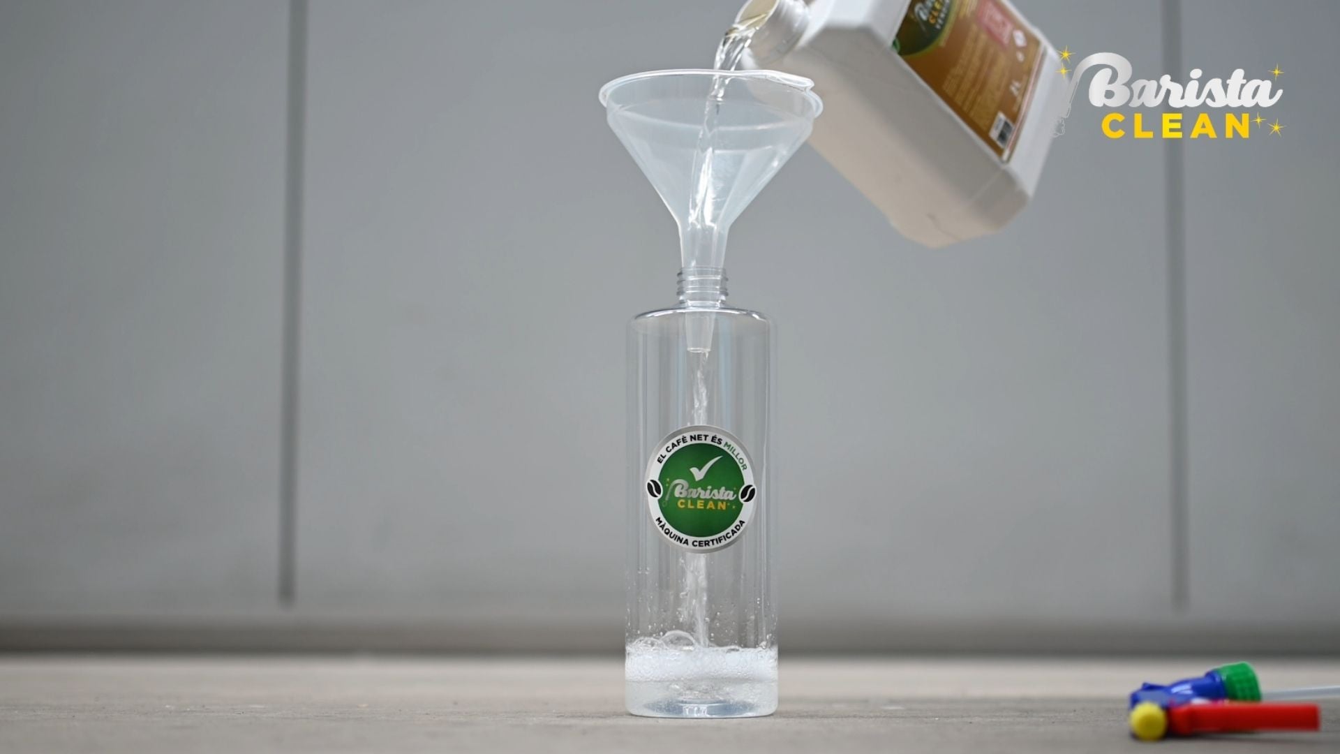 Mezcla 50% de agua y 50% de Barista Clean VENDING en un pulverizador y estará todo preparado para empezar la limpieza.